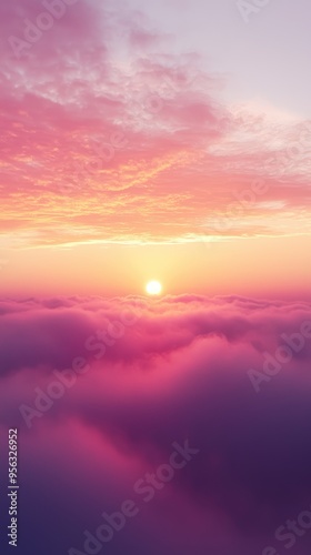 © Mariia, Fototapeta premium Sun setting over a mountain range creating a gradient effect