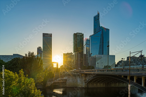 Naklejka premium Sun Shine Over La Defense Business District Skyline With Seine River