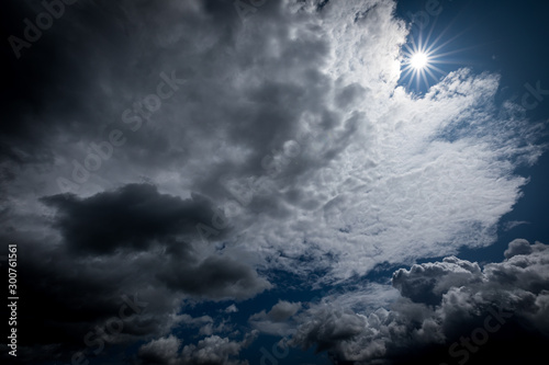 © Jean-Claude Caprara, Obraz premium Sun shining in the cloudy sky.