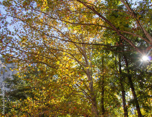 © yilmazharmanci, Fototapeta premium sun shining through a tree