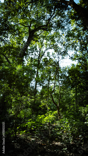 © pankajsingh, Fototapeta premium sun shining through the forest