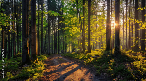 © mattegg, Obraz premium Sun Shining Through Trees in Forest