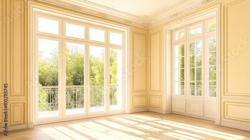 © Tetiana, Obraz premium Sun shining through windows in luxurious house interior