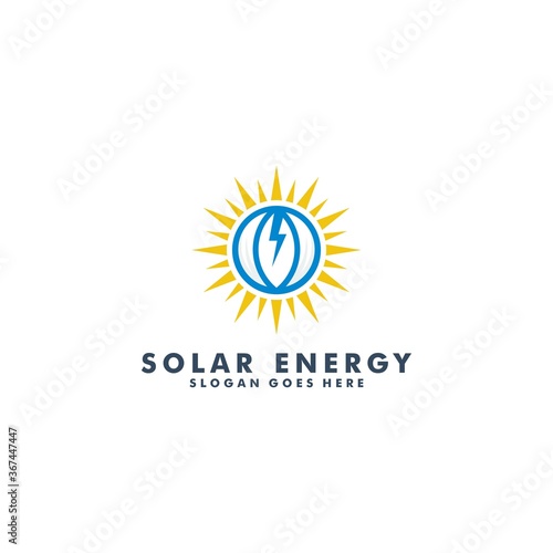 Fototapeta premium Sun solar energy logo template. Electrical icon logotype design vector...