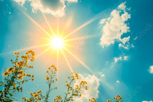 Obraz premium sun with a yellow rays and a summer