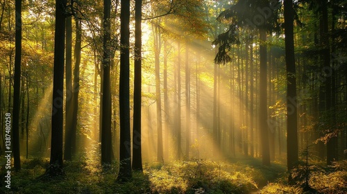 Fototapeta premium Sunbeams Dance Through Mystical Forest