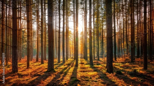 Fototapeta premium Sunbeams Filtering Through Forest Trees