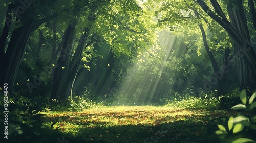 Obraz premium Sunbeams Illuminate A Lush Forest Clearing