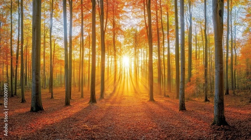 © Luxetify, Fototapeta premium Sunbeams Illuminate Autumnal Forest Pathway