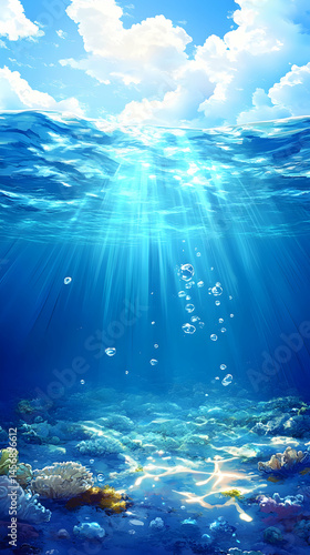 Fototapeta premium Sunbeams illuminate the ocean floor, revealing a scene of underwater tranquility