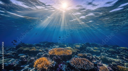 Obraz premium Sunbeams Illuminate Vibrant Coral Reef Underwater Paradise