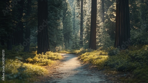 © Zie, Naklejka premium Sunbeams Illuminating a Forest Path