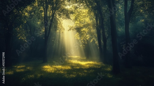 © Penatic Studio, Fototapeta premium Sunbeams Illuminating a Forest Path