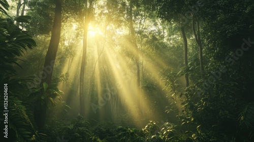 Obraz premium Sunbeams Illuminating a Lush Tropical Forest