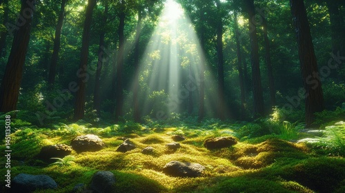© Muamanah, Fototapeta premium Sunbeams Illuminating a Mystical Forest