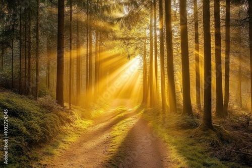 Fototapeta premium Sunbeams Illuminating a Path Through a Forest