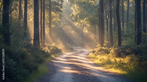 © wannathon, Obraz premium Sunbeams Illuminating Forest Path