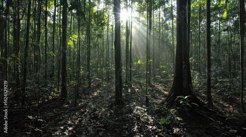© Ahmad, Obraz premium Sunbeams Illuminating Lush Rainforest
