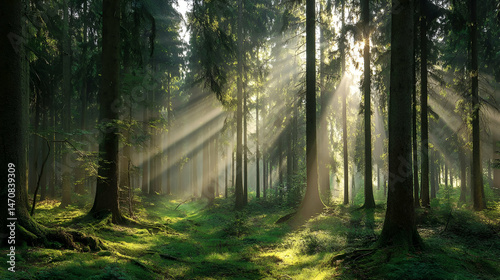 Fototapeta premium Sunbeams in a Forest