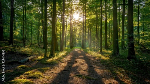 © nurul, Obraz premium Sunbeams in a Forest Path