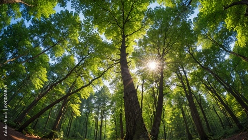 © Narongsag, Obraz premium Sunbeams in a Green Forest