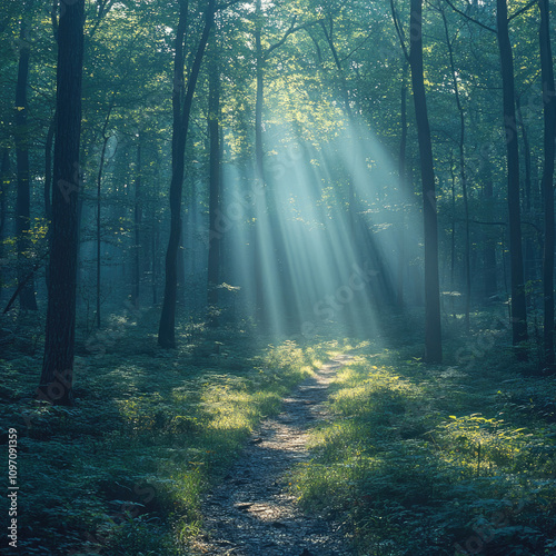 Obraz premium Sunbeams in a Mystical Forest