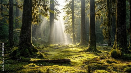 © adibaatmarini, Obraz premium Sunbeams in the Emerald Forest: A Mystical Scene