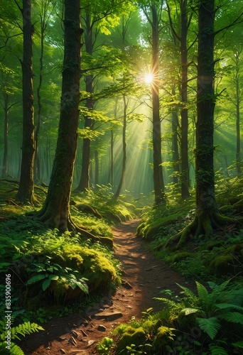 © Narongsag, Fototapeta premium Sunbeams in the Forest