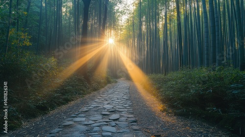 Fototapeta premium Sunbeams Path Through Bamboo Forest