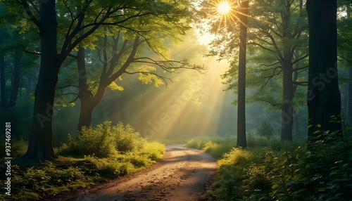 Obraz premium Sunbeams Piercing the Forest