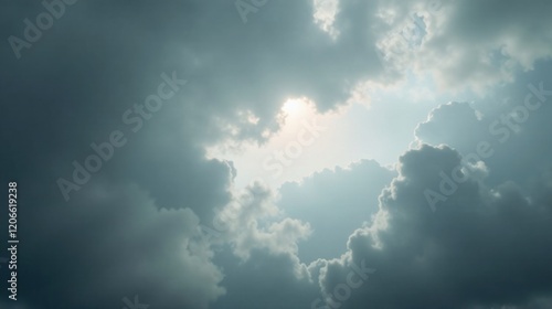 Obraz premium Sunbeams Piercing Through a Dramatic Canopy of Cumulus Clouds, a Heavenly...