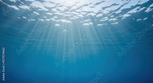 Fototapeta premium Sunbeams piercing through clear blue ocean water surface