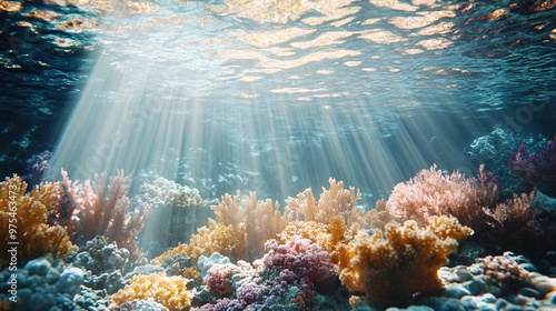 Obraz premium Sunbeams Shining on Vibrant Coral Reef
