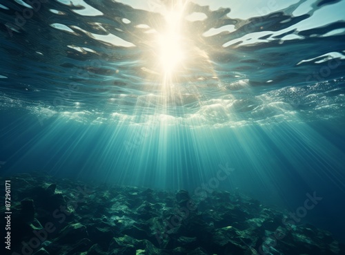 Fototapeta premium Sunbeams shining through the water's surface, creating a mesmerizing...