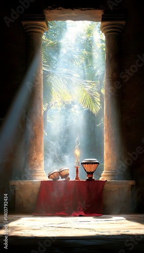 © sunan, Obraz premium Sunbeams, Temple, Offering