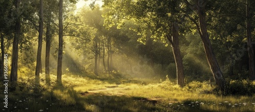 © Penatic Studio, Obraz premium Sunbeams Through a Lush Forest Path