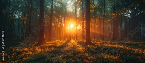 © adiba, Fototapeta premium Sunbeams Through a Misty Forest