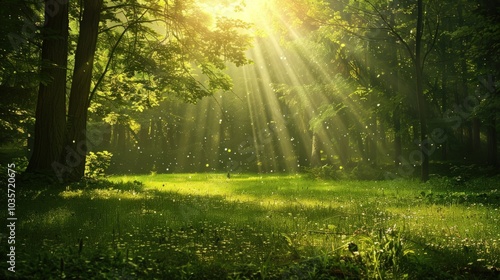 Obraz premium Sunbeams Through a Tranquil Forest
