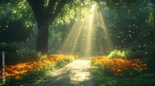 Obraz premium Sunbeams Through the Forest