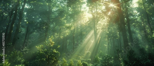 Obraz premium Sunbeams Through The Forest.