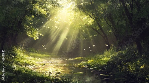 © almeera, Obraz premium Sunbeams Through the Forest Canopy