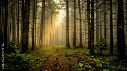 Fototapeta premium Sunbeams Through the Mist in a Forest