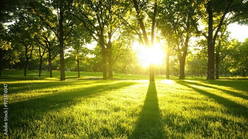 Obraz premium Sunbeams Through Trees In Park Landscape