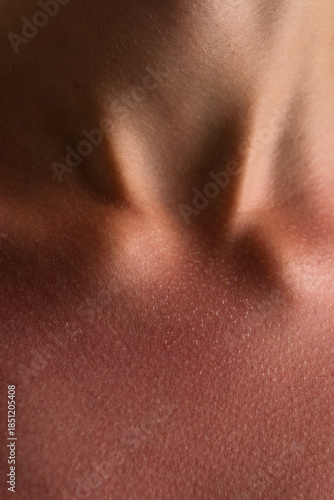 Fototapeta premium Sunburned Skin Texture on Neck and Collarbone Close-Up