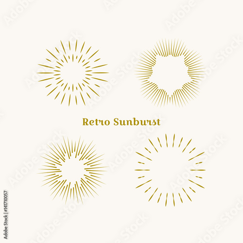Fototapeta premium Sunburst frames set. Retro gold Sun burst shape. Vintage explosion logo, label, badge. Firework design element. Old light rays radiating from a center. Retro, vintage, hipster style
