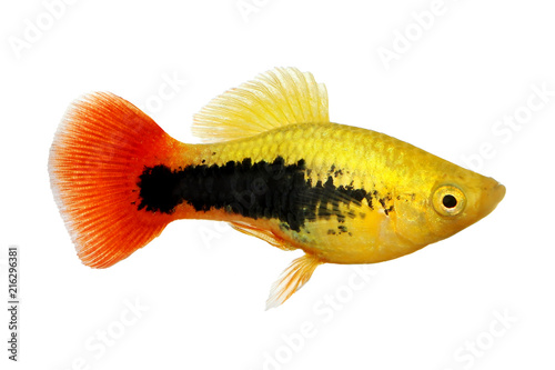 © Mirko Rosenau, Fototapeta premium Sunburst tuxedo platy male Xiphophorus variatus tropical aquarium fish