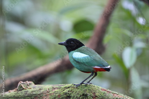 © feathercollector, Fototapeta premium Sunda Hooded Pitta (Pitta sordida mulleri) in Sabah, North Borneo, Malaysia, North Borneo, Malaysia