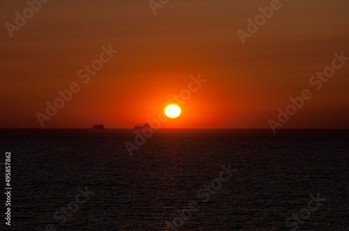 Naklejka premium sundown sky and sea with ship on horizon, bali