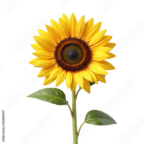 © Ploysaii, Fototapeta premium Sunflower Blooming with Bright Yellow Petals on Stem