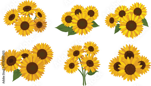 Fototapeta premium Sunflower bouquet collection, bright yellow floral design, summer blossom,...